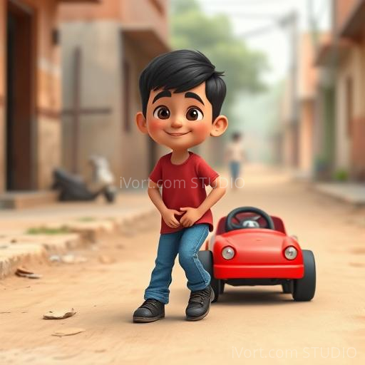 In the lively village of Ramnagar, young Aarav was bursting with excitement. Today was the day he would race his shiny red toy car against his friends for the very first time. His heart fluttered with curiosity and a little nervousness. As he looked at the colorful race track made of chalk on the dusty ground, he wondered if he could keep up with his friends. The sun shone brightly, casting warm golden light over the cheerful village, filled with the scent of marigolds and jasmine. Aarav took a deep breath, ready to start his adventure.