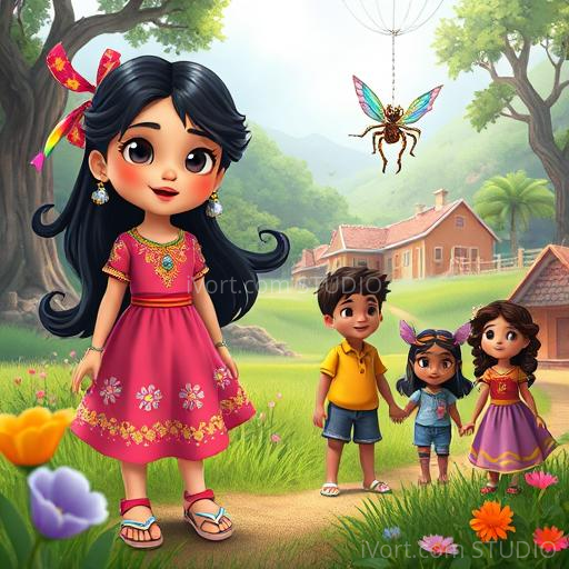 In a vibrant Indian village nestled between lush green fields and colorful houses, children woke up to a strange surprise. The sky was gray, and the flowers in the garden looked dull. Little Rina and her friends looked around in wonder, wondering why the bright colors had vanished. They decided to find out what was happening and bring back the colors to their world.