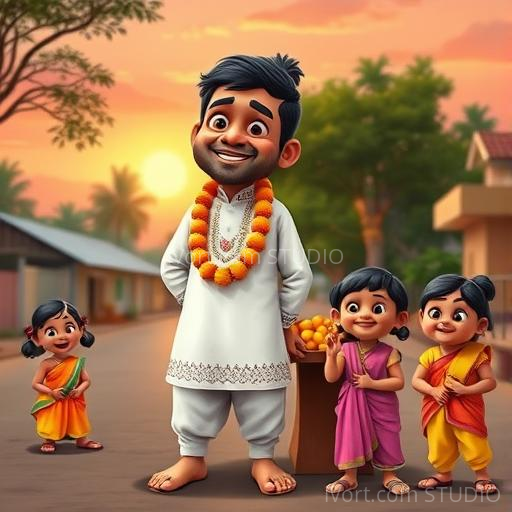 In a bustling Indian village, there was a small roadside stall where Ramu, a clever mango seller, displayed his ripe, golden mangoes. One hot summer day, a group of children gathered, eyeing the juicy fruits but hesitating to buy because they thought the prices were high. Ramu noticed their worried faces and smiled softly. He decided to share his secret to making everyone happy and his mangoes fly off the stall!