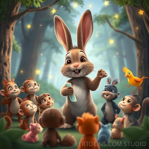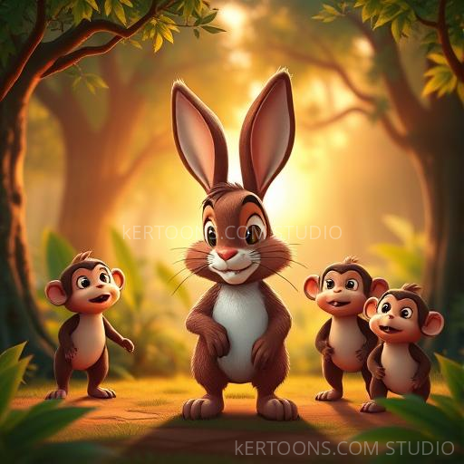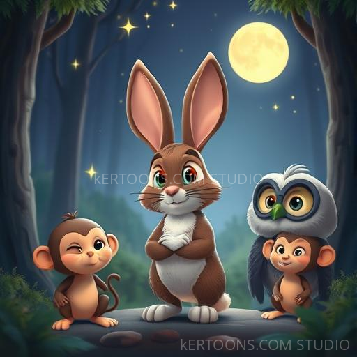 As the night fell and the contest concluded, the monkeys conceded defeat, acknowledging Rumi's exceptional talent for storytelling. Rumi, beaming with pride, thanked his audience and bid them goodnight before hopping back to the village, his heart brimming with joy and satisfaction.