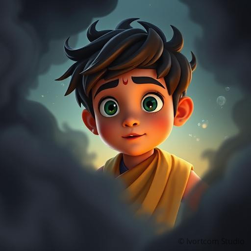 Scene 3: To his surprise, the burst bubble released a dark mist that enveloped Arjun, filling him with strange thoughts and feelings. He felt a surge of power coursing through him, but also a sense of malevolence creeping into his mind.