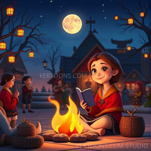 As night fell, Lina sat by a glowing fire in the village square. An old storyteller explained that the cinnamon wind was a gift from the world’s most gentle spirits, spreading kindness, courage, and joy. The wind carried stories and scents from distant places, connecting everyone with love and understanding. Lina realized that the true magic was in sharing kindness and listening with an open heart. She promised to carry this magic back to her village, sharing the cinnamon wind’s secret with everyone she knew.