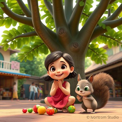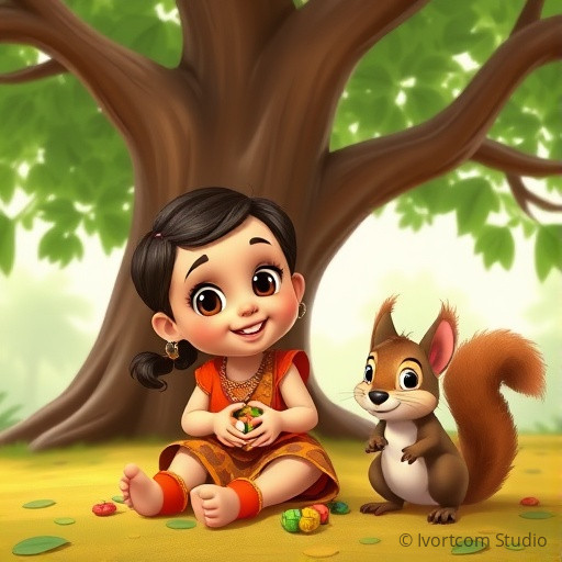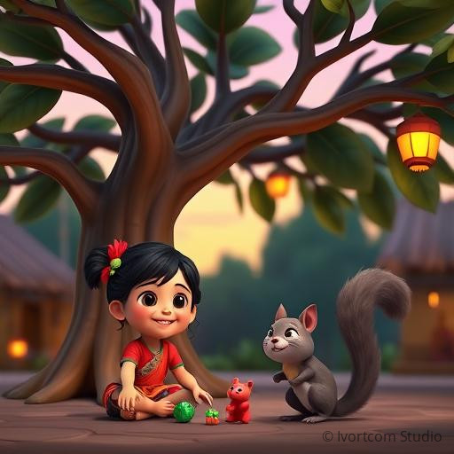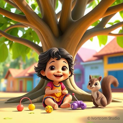 In a colorful and vibrant village, little Anaya was playing with her toys under the shade of a big banyan tree. She clapped her tiny hands together, giggling with joy as her toys danced around her.