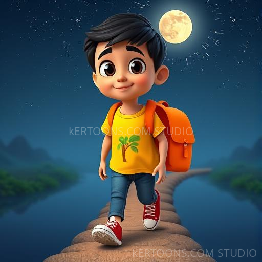 As the sun set, the sky transformed into a canvas of twinkling stars. Ramu gazed up in awe, feeling the cool night breeze and the gentle glow of the moon. Suddenly, the stars shimmered brighter and formed a path of sparkling lights. Ramu followed the glowing trail, feeling brave and grateful. He realized that even in darkness, hope and kindness shine brightly. With a heart full of wonder, he knew that every adventure teaches us to believe in the magic of dreams and friendship.