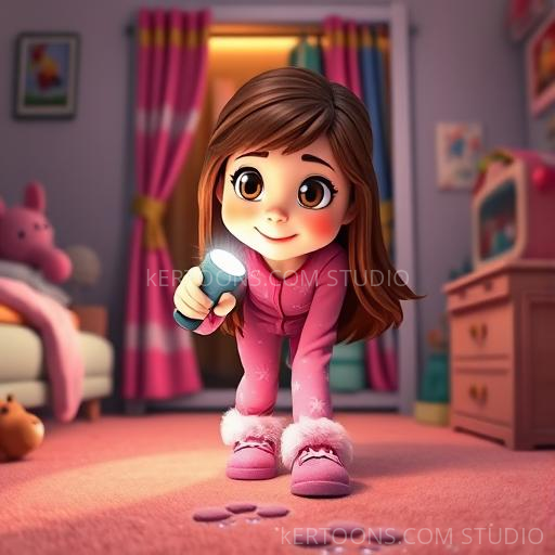 With her favorite flashlight in hand, Lily tiptoed through her room, following the sparkling symbols on the map. Each clue led her past her toy chest, under her window, and around her colorful curtains. Her cheeks flushed with excitement as she discovered tiny footprints made of glitter leading toward her closet. She hesitated for a moment, then gently opened the closet door—what could be hiding inside? Her heart pounded with anticipation, reminding her that sometimes, the biggest adventures happen when you step into the unknown with courage and a smile.