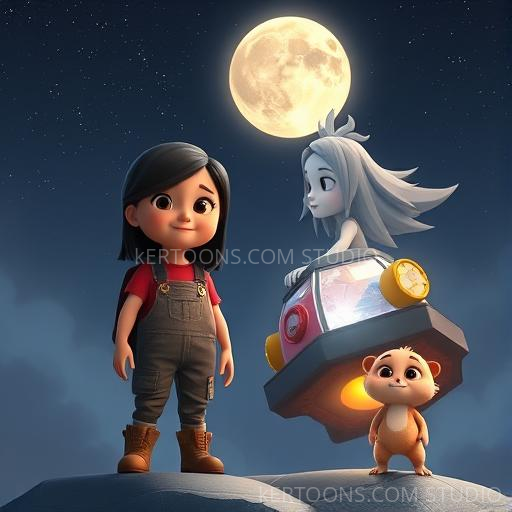 Gently landing on the moon’s shimmering surface, Neema gazed in wonder at the glowing craters and sparkling dust. She felt a wave of happiness and pride, knowing her curiosity and courage had brought her here. The moon’s magic shimmered around her, whispering stories of ancient light. She promised to protect its secrets and share its beauty with everyone back home. With her heart full of joy, Neema knew that dreams fueled by kindness and bravery could truly come true, even among the stars.