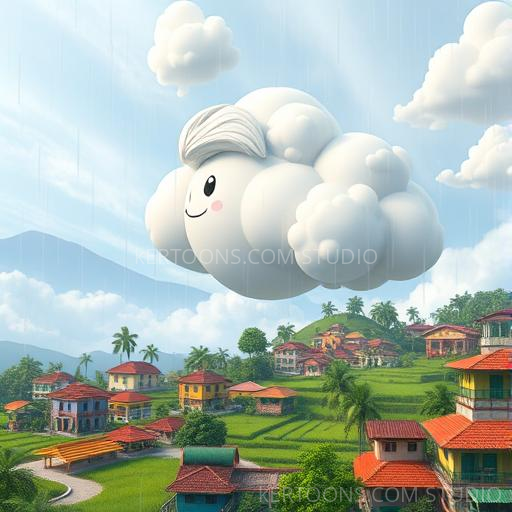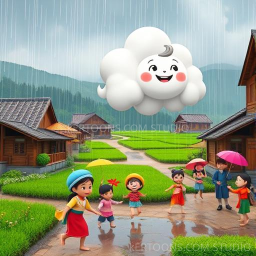 In a quaint Indian village, Cloudy the Cloud loved to drift lazily across the sky, gazing down at the lush green fields and colorful rooftops. As the first signs of monsoon appeared—fluffy clouds and a gentle breeze—Cloudy felt a bubbling excitement. He wondered how he could make the rain special, something that would make everyone dance with joy. With a twinkle in his misty eyes, he decided to create a rhythm that would fill the air with happiness and magic.