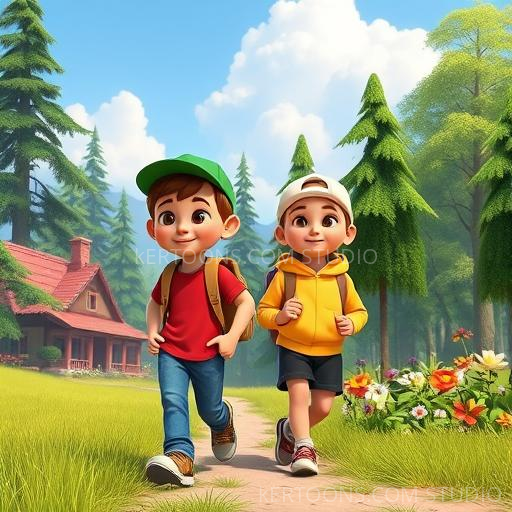 On a bright spring day in their small village, Ram and Shyam eagerly packed their backpacks, dreaming of adventures in the lush green forest nearby. Their eyes sparkled with curiosity as they imagined discovering hidden treasures and secret caves, feeling the warm sun on their faces and hearing the cheerful chirping of birds. Excited but a little nervous, they promised to stay brave and careful as they set out on their journey, ready to explore the wonders of nature together.