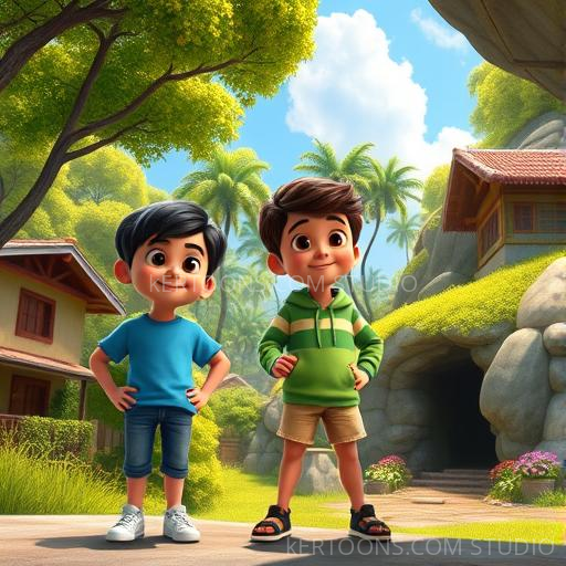 In a cheerful village nestled beside a lush, green forest, Ram and Shyam loved to explore every nook and cranny. One bright sunny morning, their eyes sparkled with curiosity as they heard whispers about a secret cave hidden deep within the woods, marked as off-limits. Their hearts fluttered with excitement and a tiny dash of nervousness, but their friendship made them brave enough to imagine the adventures awaiting inside. They looked at each other, knowing that sometimes, curiosity can lead to wonderful stories, but also reminding themselves to be cautious and respectful of rules.