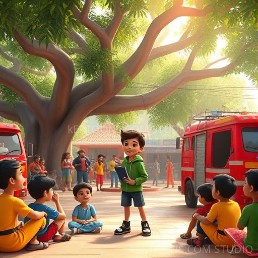 Back outside, Ram and Shyam hugged each other tightly, their hearts full of relief and gratitude. They promised never to ignore warning signs again and to respect the rules that keep everyone safe. Sitting under a big banyan tree, they shared their adventure with friends, telling them how bravery and caution go hand in hand. Their story spread through the village, teaching everyone the importance of listening, respecting boundaries, and caring for each other. From that day, Ram and Shyam became wiser friends, always ready for new adventures—with safety first.