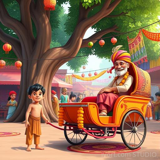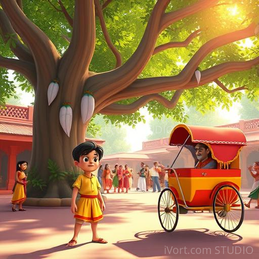 In a lively village nestled between the lush green hills of India, there lived a curious boy named Arjun. One sunny afternoon, while playing near the banyan tree, Arjun noticed his shadow stretching long and mysterious. Intrigued, he wondered what would happen if he could trade his shadow for something special. With a brave heart, he decided to explore this strange idea, little knowing that it would lead him on an extraordinary adventure of self-discovery and kindness.