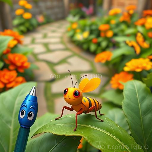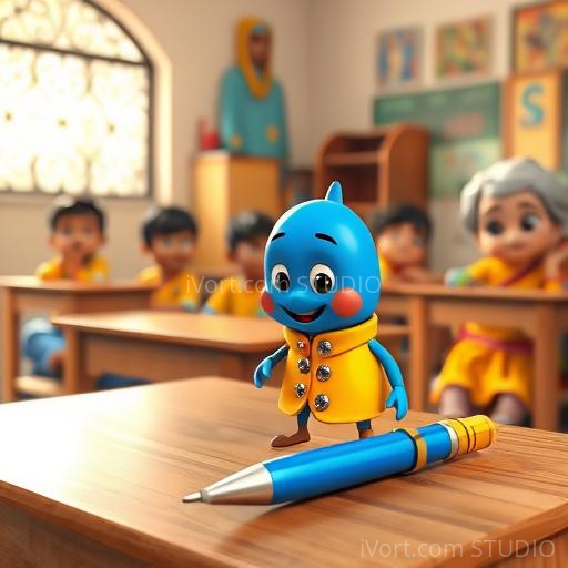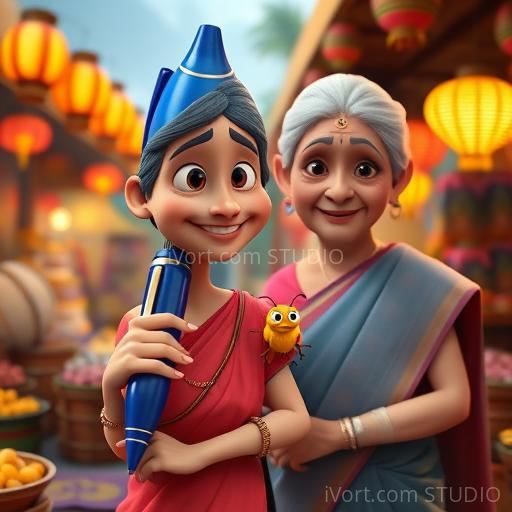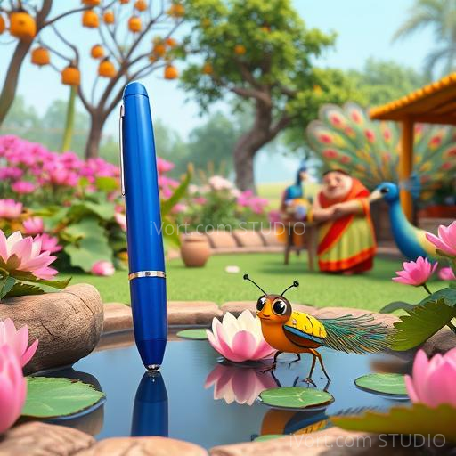 In a bustling Indian village, there was a shiny blue ink pen named Chiku, who loved to write stories about brave heroes and colorful festivals. One day, while rushing to school, Chiku accidentally slipped out of the bag and rolled under a wooden desk. Suddenly, Chiku was lost! Feeling worried and lonely, Chiku wondered if he would ever find his way back home.