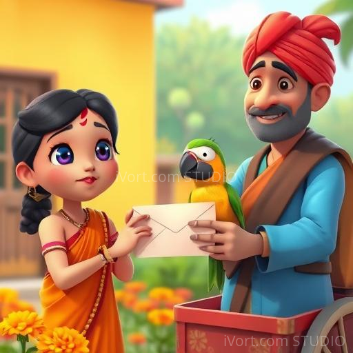 Riya decided to follow the trail of clues. She noticed tiny footprints near the mailbox and a few colorful feathers scattered on the ground. She remembered her pet parrot, Mithu, who loved shiny things. Riya wondered if Mithu had taken the letter to show his friends. As she followed the footprints, she saw her neighbor, Uncle Ravi, planting marigolds in his garden, humming a cheerful tune. Riya felt a mix of hope and confusion—who could really be behind the missing mail?