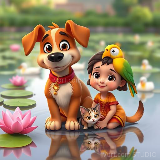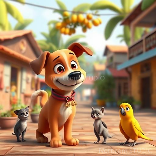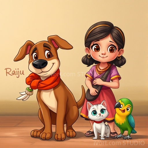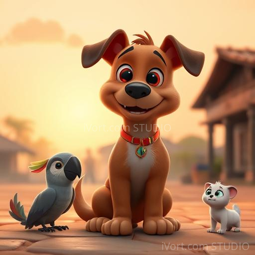 In a small vibrant village nestled between lush green fields and colorful mango trees, lived a kind-hearted dog named Raju. Raju was a cheerful dog with shiny brown fur, a wagging tail, and bright eyes full of curiosity. One sunny morning, Raju woke up feeling a little different—he couldn’t see the world around him. Despite his blindness, Raju was eager to explore, guided by his other senses and the gentle voices of his friends. His friends, a brave little girl named Anika and a wise old parrot named Kabir, promised to help him find new ways to enjoy the village. Raju’s heart was filled with hope and a tiny spark of adventure.