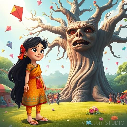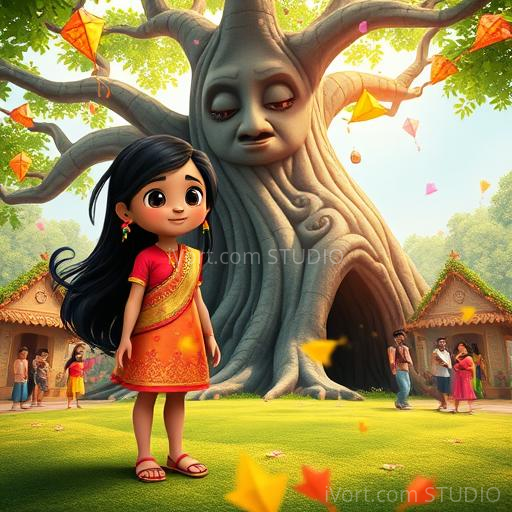 In a vibrant Indian village, young Zara loved flying her colorful kite during the festival of Makar Sankranti. One breezy afternoon, as she released her kite high into the sky, she noticed something strange—her kite shimmered with a golden glow and suddenly tugged her upwards! Before she knew it, Zara was whisked away on a magical adventure through time, holding onto her kite tightly, eager to discover where it would take her next.
