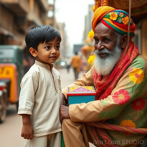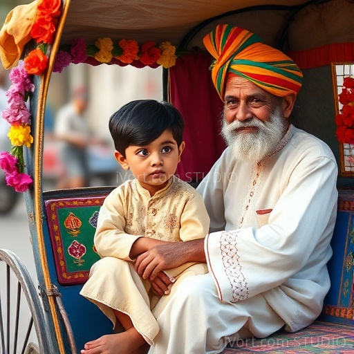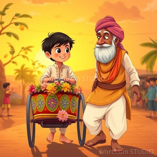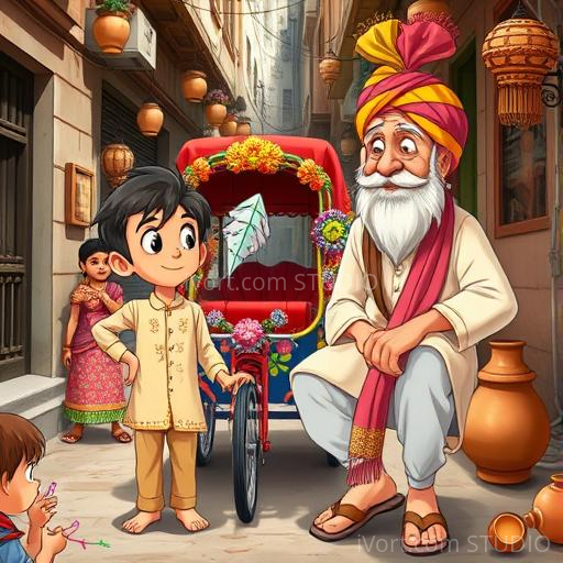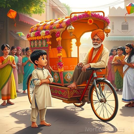 In a bustling village in India, little Ravi was curious about the world beyond his narrow alley. One sunny morning, he saw a brightly painted rickshaw decorated with colorful flowers and shimmering mirrors. His eyes sparkled with wonder—what adventures might lie ahead if he could ride in one? Today, Ravi’s simple curiosity was about to lead him on a magical journey that would teach him the true meaning of kindness and courage.