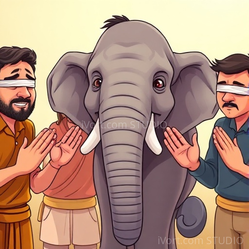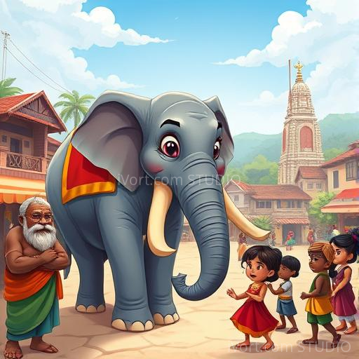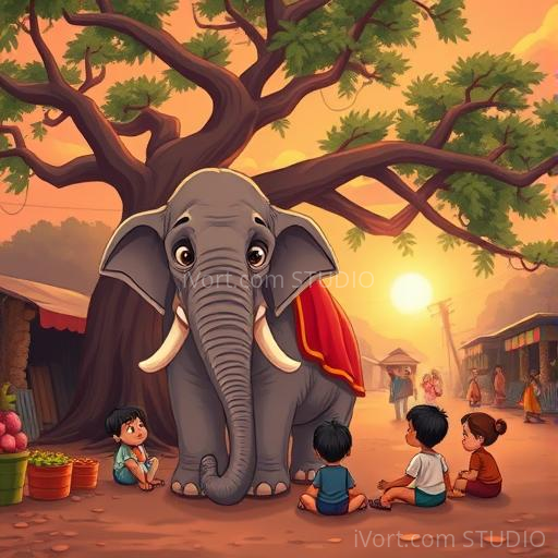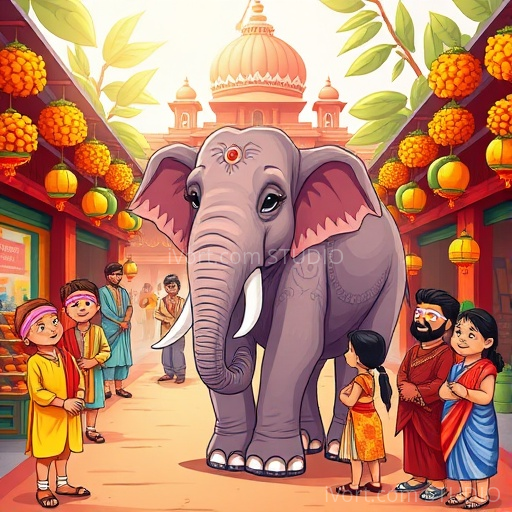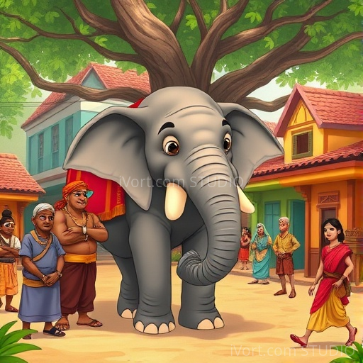 In a lively Indian village, a gentle elephant named Gaja loved exploring the bustling streets filled with colorful markets, fragrant spices, and cheerful children. One sunny morning, a group of blind men arrived, eager to understand what an elephant is like. Each man touched a different part of Gaja, believing they knew the whole elephant. But their stories were very different, leading to confusion and funny misunderstandings. Gaja watched kindly, curious about what they thought and feeling a little sad that they couldn't see the whole picture.