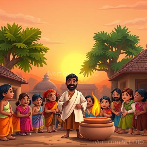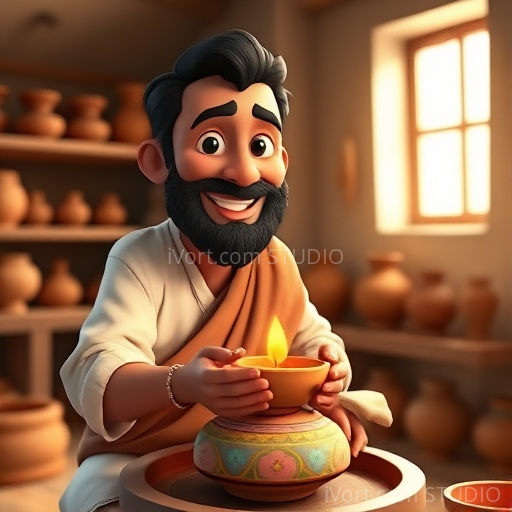 From that day on, Ramu’s simple but heartfelt pottery became famous. The villagers learned that true beauty comes from kindness, love, and being true to oneself. The prince’s visit reminded everyone that even the smallest acts, when done with sincerity, can light up the world like a shining diya. And so, the village thrived with joy, kindness, and the warmth of honest hearts.