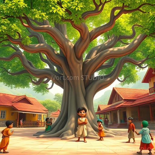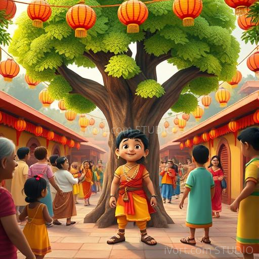 With the treasure, the village prospered, but Tenali learned an important lesson. The talking tree gently reminded him that true wealth is not just in riches, but in kindness, courage, and sharing. Tenali promised to use the treasure wisely and to always listen to the wise whispers of the tree. From that day on, the villagers celebrated the talking tree, knowing that wisdom and kindness could turn any challenge into a wonderful adventure. The tree’s gentle voice echoed in their hearts, guiding them with love and wisdom.