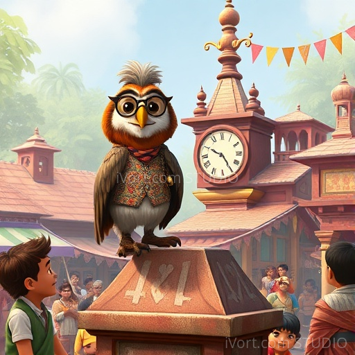 In a peaceful Indian village nestled between lush green fields and colorful flower gardens, there lived a wise old owl named Oli. Oli loved to watch the village from his tall tree, especially the clockmaker’s shop, which had a big, shining clock that ticked loudly every hour. One day, Oli noticed that the clock was not ticking properly, and he felt a flutter of worry. How could he help fix the clock and keep the village on time? His curiosity sparked a gentle adventure that would teach him the value of patience and friendship.