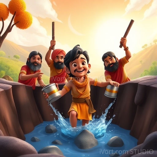 Thanks to the girl’s quick action, the villagers came together with buckets of water and sturdy sticks. Carefully, they worked to rescue Arjun from the fiery pit. With teamwork and courage, they pulled him out, safe and trembling but alive. Arjun looked around at the villagers—some with worried faces, others with newfound respect. He realized that even in a world that seemed cold and unkind, one act of bravery and kindness could bring hope. From that day on, the villagers remembered the importance of caring for each other, and Arjun learned that true bravery is about helping others, no matter how small you are.