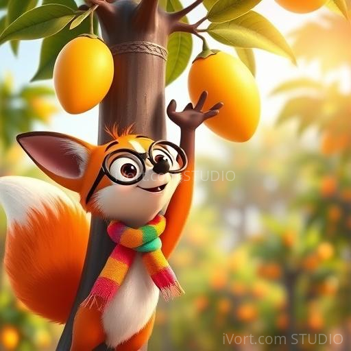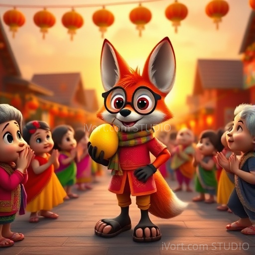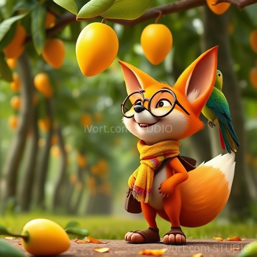In a lively Indian village nestled between lush green fields and colorful spice markets, lived a curious little fox named Tinku. Tinku loved exploring, but he always wore big round glasses that made him look wise beyond his years. One sunny morning, Tinku overheard the children talking about a mysterious, shimmering mango in the village orchard. His eyes sparkled with curiosity—he wanted to see this magical fruit for himself! But as he set out, he wondered if his glasses would help him see the mango clearly or if they'd make him look funny. With a brave heart, Tinku stepped into the adventure, ready to discover that sometimes, what makes us different is what makes us special.