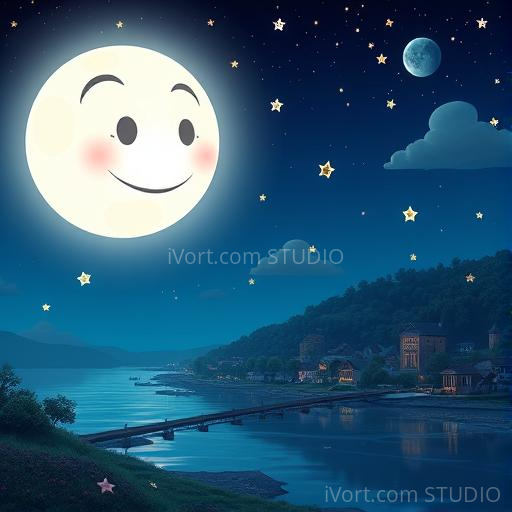 That night, as the villagers settled into their cozy homes, the moon rose high in the sky, casting a silver glow over the river. Rivu watched the moon’s gentle light dance on its surface, shimmering like tiny diamonds. The moon’s soft glow whispered lullabies from far away, telling Rivu to relax and let go of worries. The stars twinkled happily, joining in the gentle song. Rivu felt its restless splashes slow down, becoming soft ripples that shimmered peacefully. The river realized that the moon’s calm light was like a gentle hug, helping it to sleep soundly. From that night on, Rivu looked forward to the moon’s nightly visit, knowing it would bring peaceful dreams and quiet waves. The villagers smiled, happy to see their river finally resting, learning that sometimes, all we need is a little light and kindness to find peace.