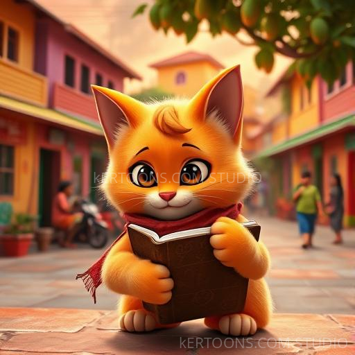 In a lively Indian village with colorful houses and bustling markets, lived a fluffy orange cat named Momo. One sunny morning, Momo discovered an old, dusty notebook tucked behind a mango tree. As he pawed through the pages, he realized they were filled with wonderful poems about the stars, the river, and the festival of Diwali. Curious and excited, Momo decided he wanted to write his own poems, but he didn’t know how! His whiskers twitched with determination as he looked at the blank pages, ready to fill them with his own magical words.