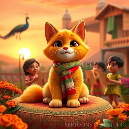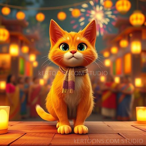 The festival of Diwali was near, and the whole village was decorated with glowing lamps and colorful lanterns. Momo decided to share his poems with everyone during the celebrations. As the villagers gathered around, Momo stepped onto a small wooden stage, his fur shining like gold in the lantern light. With a deep breath, he recited his poems about the stars, the moon, and the joy of togetherness. The villagers cheered and clapped, their hearts warmed by the little cat’s brave words. Momo felt a glow inside, brighter than any lamp, knowing he had found his voice.