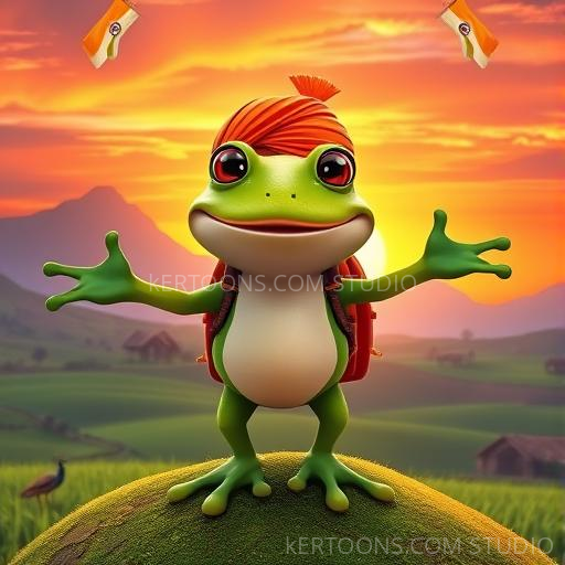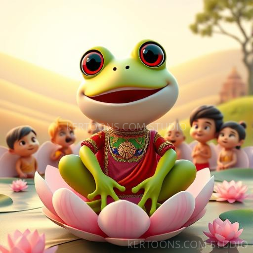 In a lush, vibrant village nestled between the colorful hills of India, a tiny green frog named Raga loved to sing. But Raga wasn’t just any frog—he dreamed of singing like the great opera singers of Mumbai! One sunny morning, as the village buzzed with life, Raga faced a challenge: he wanted to perform a grand opera for all his friends, but he was worried his voice wasn’t good enough. With a brave hop, Raga decided to practice every day by the sparkling pond, surrounded by blooming lotuses and singing cicadas. His friends, the cheerful crickets and wise old turtle, cheered him on, encouraging him to believe in his dreams. Raga’s heart filled with hope, and he knew that with courage and practice, he could sing the most beautiful opera the village had ever heard!