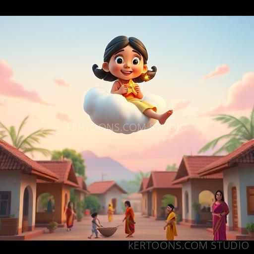 In a tiny, colorful village nestled between lush green hills and a sparkling river, little Mira gazed up at the night sky with wide, curious eyes. She wondered where the stars went when the sun woke up in the morning. Her grandmother, sitting nearby on a woven cot, smiled softly and told her, ‘The stars sleep in a special place called the Sky Garden, high above the clouds, where they rest until night falls again.’ Mira’s heart fluttered with excitement—she decided she would find this magical Sky Garden and see the stars sleep!