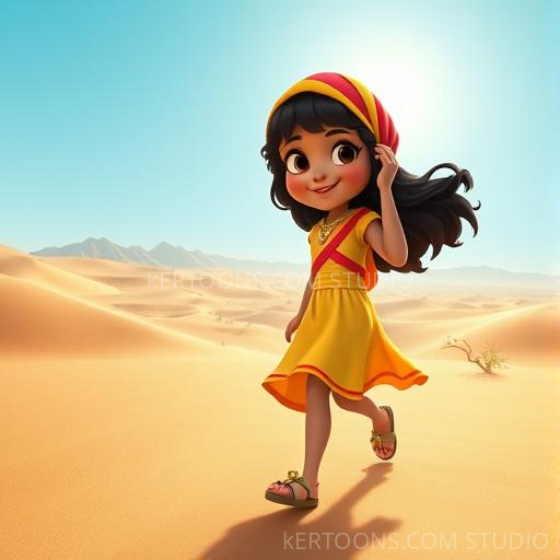 In the golden sands of the vast Sahara, little Amina, a curious girl with bright eyes and a wide smile, hears a mysterious whisper carried by the wind. She wonders what secrets the desert holds and decides to follow the soft, swirling sounds, feeling both excited and a little brave. As she steps carefully over the warm dunes, she feels the gentle breeze and listens closely, eager to discover the magic hidden beneath the endless sky.