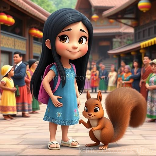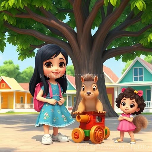 Suddenly, a mischievous squirrel appeared, curious about the commotion. It scurried closer to Anaya, its tiny paws tapping on the ground as it watched her play.