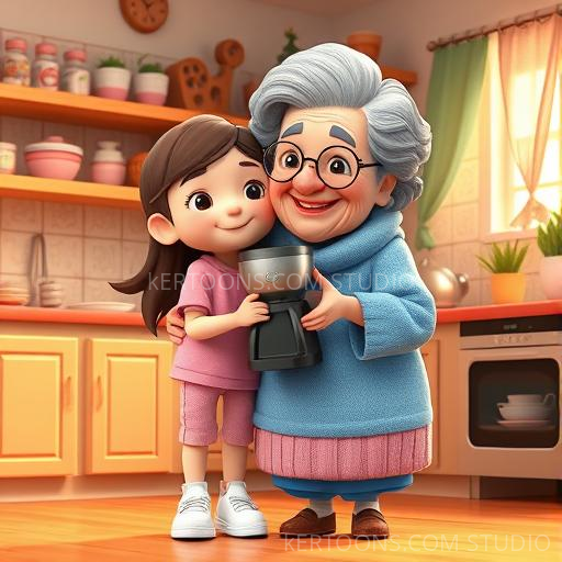 As the swirling colors slowed, Lily was gently back in her cozy kitchen, holding the coffee machine close. She felt a warm glow inside, full of new stories and friends from faraway places. Grandma hugged her and said, 'Every sip of curiosity can take you on a wonderful journey.' Lily nodded happily, knowing that her adventures had only just begun. With her heart full of wonder, she looked forward to sharing her stories and making new friends, knowing that magic lives in kindness, curiosity, and a little bit of imagination.