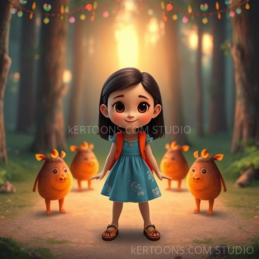 Luna walks deeper into the woods, where the trees seem to hum softly and the firewood’s glow flickers like tiny stars. Suddenly, the firewood whispers again, telling Luna about a hidden enchanted clearing where firewood friends wait. Luna feels a flutter of excitement and a little nervousness. She steps carefully over mossy stones and listens to the gentle rustling of leaves, feeling the magic in the air. She realizes that helping her glowing friends is also about discovering the magic inside herself—bravery, kindness, and curiosity.
