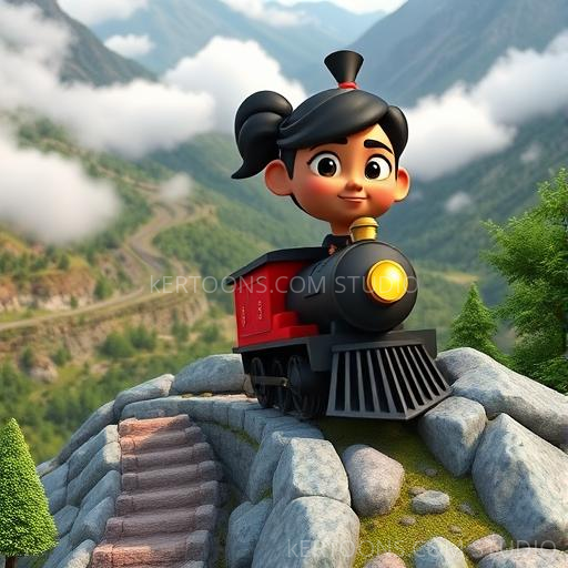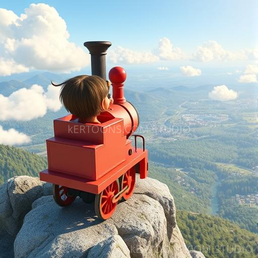 Finally, after a brave effort, Little Engine reached the top of the mountain. She looked out over the world below—green forests, sparkling rivers, and tiny villages. The clouds tickled her wheels, and she felt a warm glow inside. She realized that even a small engine can achieve big dreams if she believes in herself. As she whistled happily, she knew this was only the beginning of many more adventures to come.