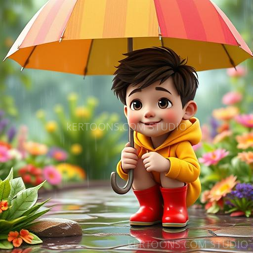 One afternoon, Leo decided to take his counting outside into the garden. He crouched under a big umbrella, watching the rain dance on the leaves and puddles. As he counted each raindrop that landed on his umbrella, he imagined they were tiny fairy friends from a faraway land, each with a story to tell. The more he counted, the more he felt connected to the world around him—every drop was a tiny gift from the sky. Leo realized that counting made him notice the beauty in everything, even a rainy day.