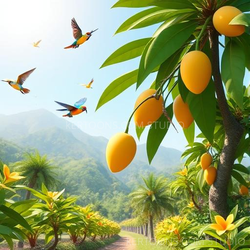 In a sunny tropical village, there was a little mango named Momo who dreamed of soaring through the sky like the birds. Every day, Momo watched the colorful parrots and hummingbirds dance in the air, feeling a spark of hope that one day, he could fly too. But mangoes are heavy and rooted to the tree, so Momo wondered if his dream was just a wish. One morning, as the golden sun kissed the leaves, Momo decided to believe in himself and find a way to fly, no matter what anyone said. His heart fluttered with excitement and a tiny bit of fear, but he knew that dreams can come true if you believe and try.