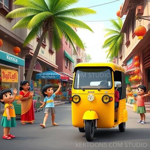 One sunny morning in Kerala, Toto the tiny auto rickshaw woke up feeling curious. Today, he wanted to explore beyond his usual streets. As he rolled out of the garage, Toto wondered what magical sights and friendly faces awaited him. With a cheerful honk, he set off on his adventure, eager to discover the colorful world around him and make new friends along the way.