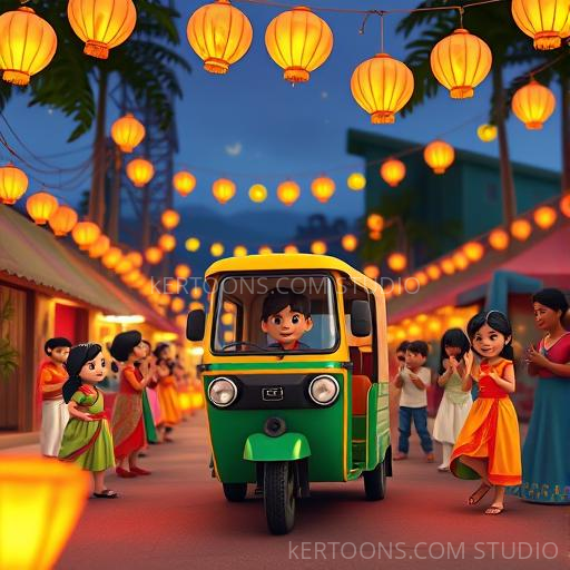 As the stars twinkled above, Toto returned home, feeling happy and full of stories. He had learned that exploring with kindness, curiosity, and friends makes every adventure special. Toto beeped a gentle farewell to the moon, grateful for his magical day in Kerala. With a happy heart, he settled into his cozy garage, dreaming of new adventures tomorrow. And so, Toto’s journey reminded everyone that kindness and curiosity turn every day into a wonderful story.