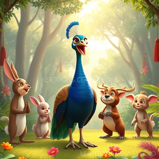 With renewed courage, Priya opened her beak and sang a joyful song for all the animals. Her voice was sweet and full of happiness, spreading cheer through the forest. As she sang, her feathers caught the sunlight, shining brighter than ever before—not just on the outside, but from her loving heart. The animals gathered around, clapping and cheering, feeling the warmth of her joyful spirit. Krishna watched with a gentle smile, knowing Priya had found her true shine.
