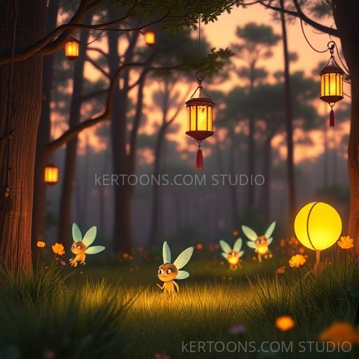 In a lush, enchanted forest near a lively Indian village, fireflies shimmered like tiny stars. Lali, a gentle firefly, loved to glow but often wondered if her light was bright enough for the grand Moonlight Parade. As the evening sky turned a warm orange, Lali gazed at the other fireflies practicing their twinkles, feeling a tiny seed of doubt grow in her heart. She wondered if her glow was special enough to join the magical celebration under the full moon.