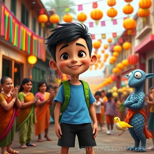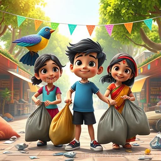 As the festival continued, Raju realized that even the smallest person can make a big difference if they care and try. His heart swelled with happiness, knowing that kindness and creativity could turn mess into magic. From that day on, everyone in the village remembered that small actions, filled with love, can create a sparkling, beautiful world for all to enjoy.
