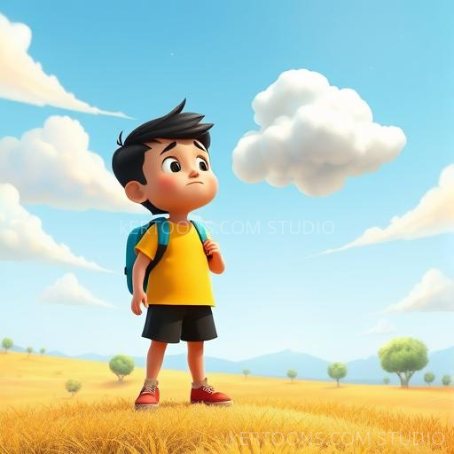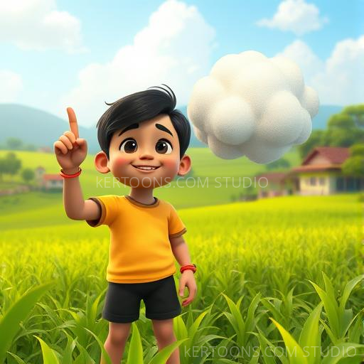 On a bright summer morning in a lively Indian village, Chintu loved exploring the lush fields and climbing tall mango trees. As he looked up at the sky, a fluffy, shimmering cloud winked at him, making his eyes sparkle with wonder. Little did he know, this cloud would become his magical new friend, ready to share adventures under the warm sun.