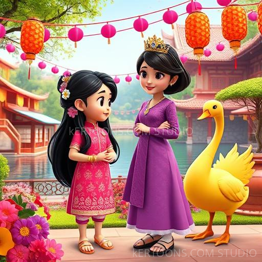 Back in the village, everyone gathers to celebrate Sana’s bravery and kindness. The festival is filled with music, dancing, and colorful lights. The golden swan returns to the lake, shining brighter than ever, as Sana smiles happily. She learns that true happiness comes from sharing and caring, not from greed. The villagers cheer, knowing that kindness has made their world a more beautiful place.
