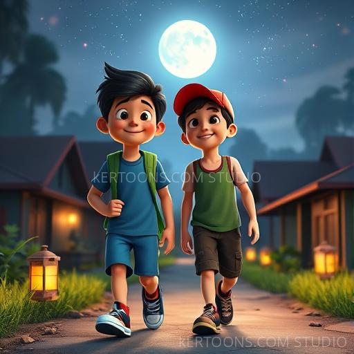 Finally, Suresh and Ramesh arrived back in their village as the stars began to twinkle. Their faces shone with pride, and their hearts were full of gratitude for the Mountain Man’s help. They realized that staying calm, listening to wise guides, and helping others in need made every adventure meaningful. As they shared their story under the moonlit sky, they promised to respect nature and be brave in every challenge they faced in the future.