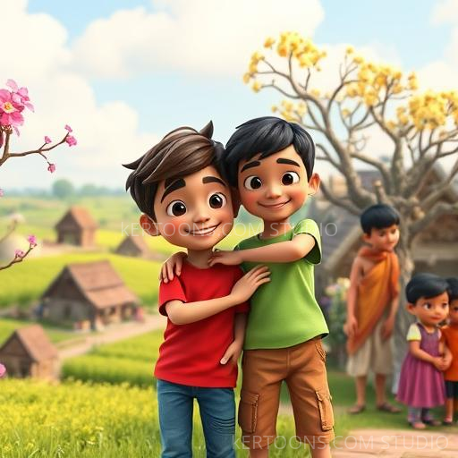On a bright spring day in their small village, Ram and Shyam eagerly packed their backpacks, dreaming of adventures in the lush green forest nearby. Their eyes sparkled with curiosity as they imagined discovering hidden treasures and secret caves, feeling the warm sun on their faces and hearing the cheerful chirping of birds. Excited but a little nervous, they promised to stay brave and careful as they set out on their journey, ready to explore the wonders of nature together.