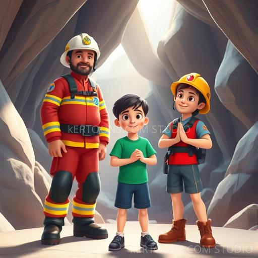 Suddenly, Ram pointed towards a tiny flickering light deep inside the cave. Shyam listened carefully and heard the distant sound of sirens. Their hearts fluttered with hope as they realized help was coming! The faint glow grew brighter, guiding them through the twisting tunnels. As they followed the light, they felt courage blooming inside, knowing that brave firefighters were on their way to rescue them. Their worries slowly turned into smiles of hope and trust.