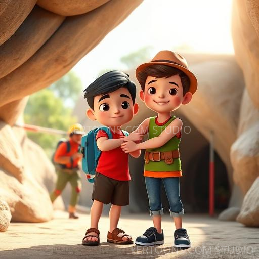The brave fire rescue team arrived with shining tools and gentle care. Carefully, they entered the dark cave, guiding Ram and Shyam with warm smiles. The boys stayed calm, trusting the rescuers, and soon, they were out in the bright sunlight once more. They hugged each other tightly, feeling grateful and proud of their bravery and the importance of listening to warnings.