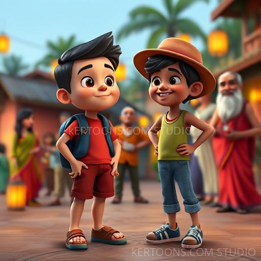 On a bright sunny day in a small Indian village, Ram and Shyam loved exploring every nook and cranny of their lush forest. Their eyes sparkled with curiosity as they heard whispers about a mysterious restricted area. With hearts pounding with excitement, they decided to embark on an adventure to uncover its secrets, feeling a mix of thrill and wonder.